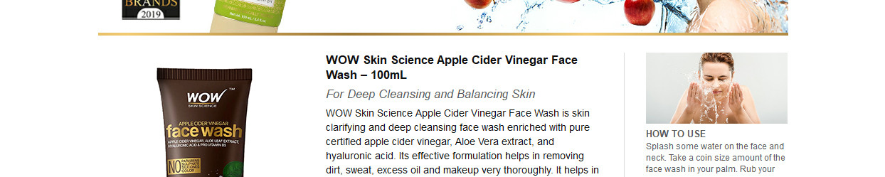 HOME>BEAUTY & HYGIENE>SKIN CARE>FACE CARE>WOW SKIN SCIENCE Apple Cider Vinegar Face Wash - Aloe Leaf Extract, Cleanses Gently, No Parabens & Sulphate