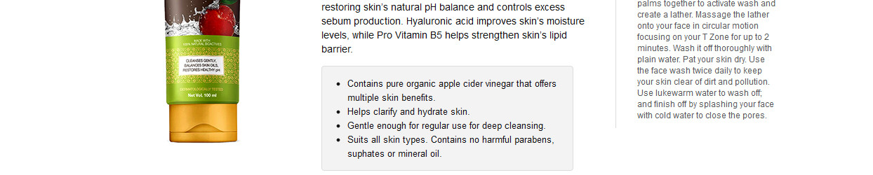 • Use the face wash twice daily to keep your skin clear of dirt and pollution.