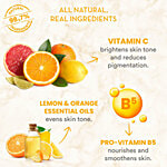 Purified Water, Cocamidopropyl Betaine, Glycerin (Vegetable Derived), Sodium Cocoyl Isethionate (and) Disodium Cocoyl Glutamate, Cocomonoethanolamide, Aloe Barbadensis Leaf Extract, D Panthenol (Pro-Vitamin B5), Sodium PCA, Mulberry Extract, Liquorice Extract, Sodium Hyaluronate (Hyaluronic Acid), Ascorbyl Glucoside (Vitamin C), Allantoin, Fragrance, Lemon Essential Oil, Orange Essential Oil, Carbomer, Xanthan Gum, Triethanolamine, Tocopheryl Acetate (Vitamin E), Sodium Benzoate, Potassium Sorbate, Phenoxyethanol & Sodium Gluconate.
