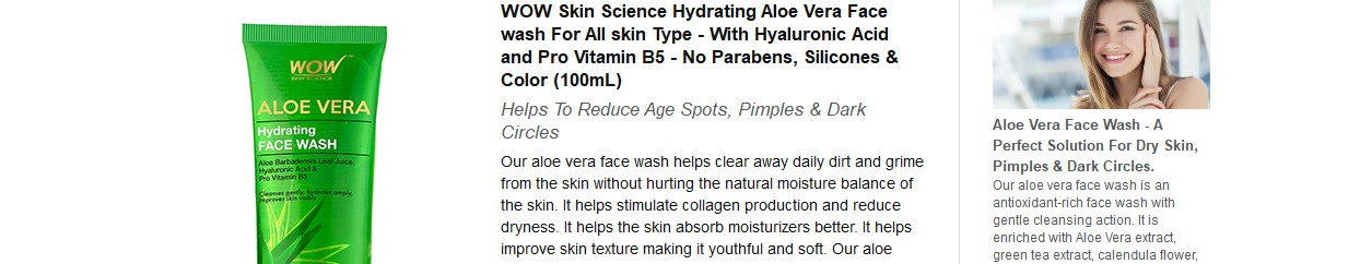 Give your skin the gift of gentle and wholesome cleansing with Wow Skin Science Aloe Vera Foaming Face Wash with Built-In Face Brush. It is a skin-reviving face wash that helps to refresh dull skin by gently removing the layer of dead skin, and keeping excess sebum in check. The face wash comes with a built-in face brush with gentle silicone bristles to help give your face deep cleansing on surface and clears out the pores.Enriched with Aloe Vera, hyaluronic acid, green tea, calendula flower and cucumber, it helps to cleanse, tone, hydrate and soothe your skin. Aloe vera extract helps to keep the skin hydrated and nourished, while green tea supports in protecting the skin from damage by environmental pollutants. The actives in this soothing and nourishing face wash help to calm irritated skin and retain the moisture mantle of the skin. It refreshes tired skin and helps to boost suppleness and radiance.