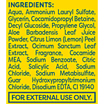Aqua, Ammonium Lauryl Sulfate, Glycerin, Cocamidopropyl Betaine, Decyl Glucoside, Propylene Glycol, Aloe Barbadensis Leaf Juice Powder, Citrus Limon (Lemon) Peel Extract, Ocimum Sanctum Leaf Extract, Fragrance, Cocamide MEA, Sodium Benzoate, Citric Acid, Salicylic Acid, Sodium Chloride, Sodium Metabisulfite, Guar Hydroxypropyltrimonium Chloride, Disodium EDTA, CI 19140