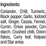 Coriander, Chilli, Turmeric, Fenugreek, Clove, Black Pepper, Garlic, Salt, Ginger, Cassia, Mace and Nutmeg
