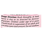 Brush thoroughly, at least twice a day as directed by the dentist/physician. Children under the age of 6 years should brush in the supervision of an adult and use only a pea-sized amount. Do not swallow.