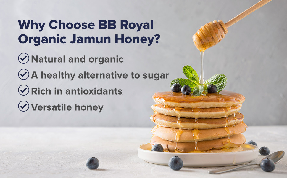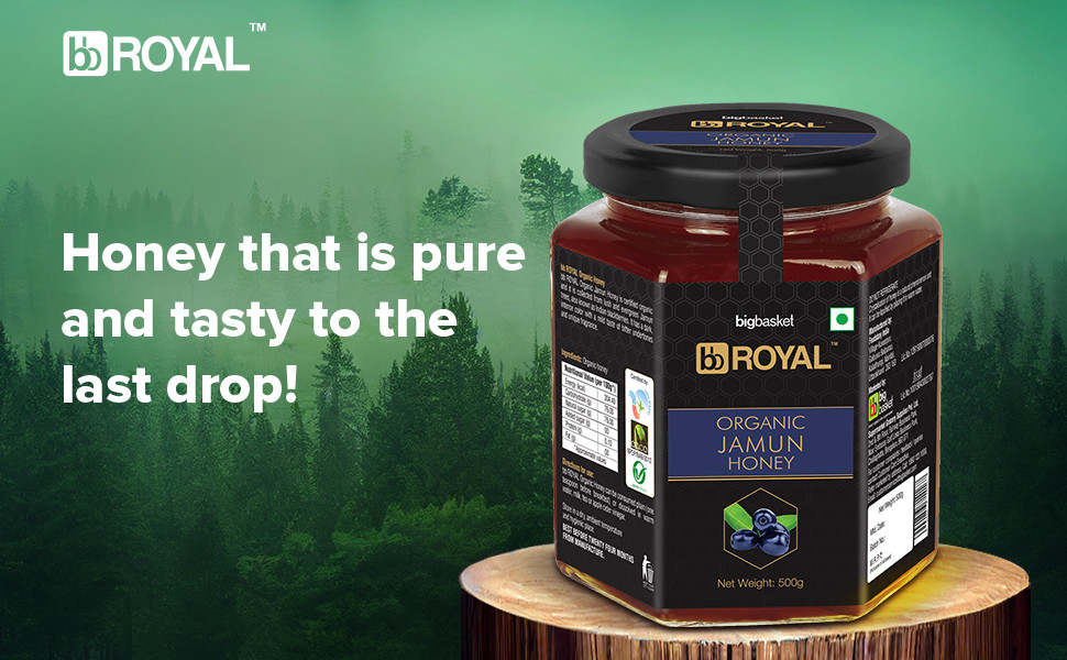 About the productBB Royal Organic Jamun Honey is a certified organic honey sourced from natural beehives. This honey contains no added flavour, colour or synthetic substances and is rich in antioxidants that can boost immunity. It is an ideal choice for those looking to cut down on unhealthy sugars in their diet and enjoy a healthier lifestyle. The honey can be enjoyed with any flavoured tea or as part of BB Royal's range of food products, including dry fruits, pulses and breakfast cereals.