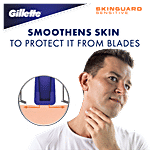 The new Gillette Skinguard is a revolutionary razor that is designed for any man who loves his skin. This 2-bladed razor has a unique Skinguard technology that minimizes contact between the blades and your face. It is the first Gillette razor in India with double lubrastrips that leave your skin feeling smooth after the shave. So experience the new Gillette Skinguard today- for a shave that your skin will love.