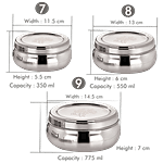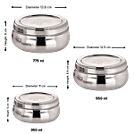 bb home Belly Puri Dabba/Container With Lid - Stainless Steel, Rust Proof, Durable, 3 pcs