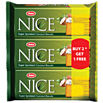 Topped with tiny sprinklings of sugar crystals relish the heavenly taste of coconut in every bite. Kids will love this dual taste and what is a better way to start playtime than with tasty servings of Nice. Crunchy bites of sugary-coconutty flavoured biscuits, now available in a combo of 450gms attractive packaging.