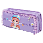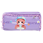 No Question askedDP Printed Fabric & PU Pencil Pouch - Purple, BB1257DPPL
