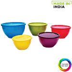 All Time Plastic Mixing Bowl With Lid - Assorted, 5 pcs (800 ml + 1300 ml + 2300 ml + 3200 ml + 4700 ml)