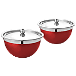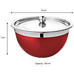 Vinayak Steel Premium Serving Bowl With Steel Lid - Maroon, 500 ml Set of 2