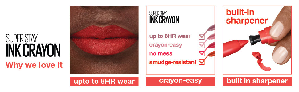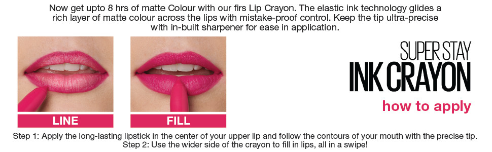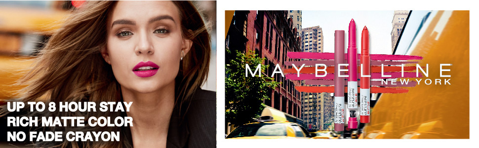 Enjoy Super Stay Crayon Lipstick by Maybelline New York, our 1st lip crayon with Elastic Ink Technology which glides a rich layer of matte colour across the lips with mistake-proof control that lasts up to 8 hrs of wear. Keep the tip ultra-precise with the built-in sharpener, so you can easily apply your lip colour no matter where your day takes you. Available in 11 shades, this smudge and transfer-resistant lip crayon is a long-wearing lip colour.