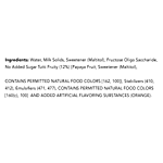 Water, Milk Solids, Sweetener {Maltitol [965(i)], Stevia- Stevioside [960]}, Fructose Oligo Saccharide, No Added Sugar Tutti Fruity (12%) [Papaya Fruit, Sweetener [Maltitol 965 (ii)], CONTAINS PERMITTED NATURAL FOOD COLOURS [160(b), 160(c), 100], Stabilizers (410, 412), Emulsifiers (471, 477), CONTAINS PERMITTED NATURAL FOOD COLOURS [160(b), 160(c), 100], AND ADDED ARTIFICIAL FLAVORING SUBSTANCES (ORANGE). Numbers in Bracket as per International Numbering System.
