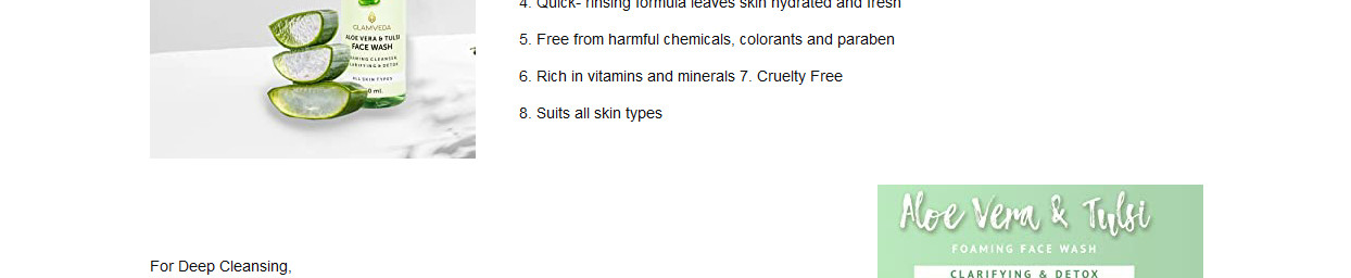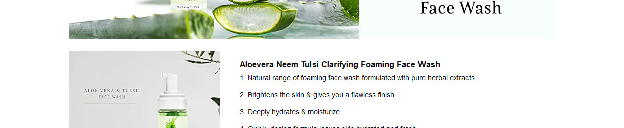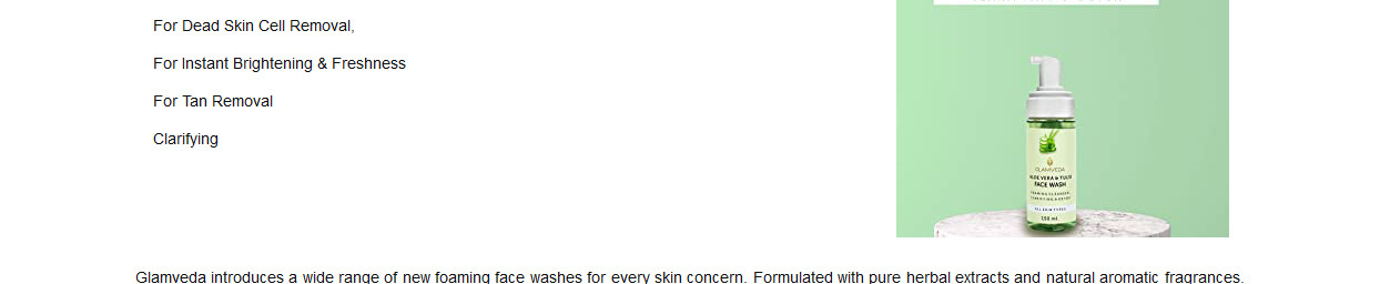 Glamveda Aloe Vera Neem & Tulsi Clarifying Face Wash enriched with pure extracts exfoliate and deeply cleanse the skin. Soft & non-drying formula removes dirt & debris. Aloe Vera nourishes & calms skin, Neem fights acne and controls oil production. Quick rinsing formula leaves skin fresh, clear & glowing, without excessive drying the skin.