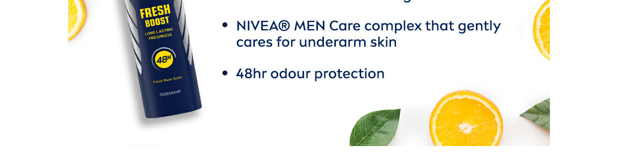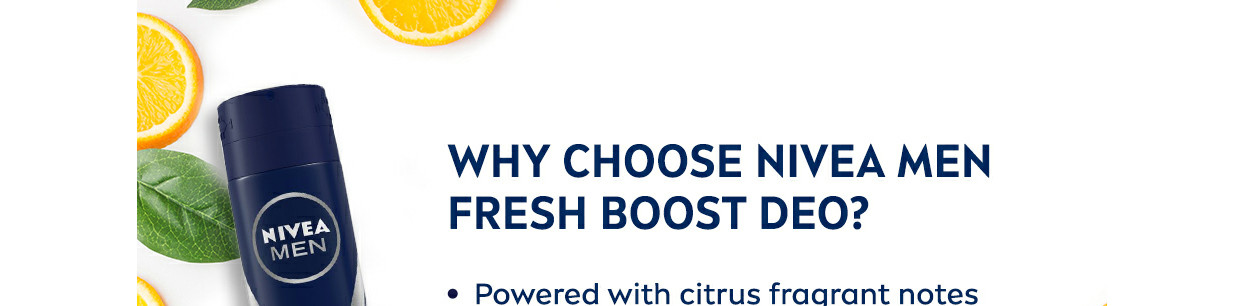 Nivea Men Fresh Power Boost Deodorant is for men who are always on the run. A men’s deodorant that gives you a powerful boost of freshness and day-long protection from body odour. This body spray for men comes with warm musk and citrus fragrance notes, which keep you in high gears, throughout the day.