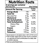 Nutrition_per: 33g Serving_Size: 33g Energy (kcal): 190 Total Fat: 13g Saturated Fat: 2.5g Cholesterol: 0mg Total Carbohydrate: 10g Net Carbohydrate: 7.6g Dietary Fiber: 2.4g Sugars: 5.8g Protein: 8.3g Sodium: 113mg Potassium: 193mg