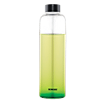Made of 100% borosilicate glass, the glass bottle keeps your water perfectly pure and 100% safe. The cylindrical shape ensures that it fits easily into the side of your refrigerator, so you can use it to store your water and juices in your fridge, or even carry it around. It is ideal for using at the office as well as at home.