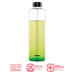 Made of 100% borosilicate glass, the glass bottle keeps your water perfectly pure and 100% safe. The cylindrical shape ensures that it fits easily into the side of your refrigerator, so you can use it to store your water and juices in your fridge, or even carry it around. It is ideal for using at the office as well as at home.