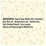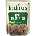 Indira's Ragi Idli is a 100% natural product made of Ragi (Finger Millet) 47%, Semolina, Rice Bran Oil, Bengal Gram Dal, Cashewnuts, Salt, Sesame, Mustard Seeds, Curry Leaves, Spices.