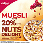Kellogg's Muesli with 20% Nuts Delight is an indulgent combination of select ingredients for your discerning palate. Five nutritious grains (Wheat, Oats, Rice, Corn and Barley ) come together with delicious inclusions (raisins and almonds) to give you an unparalleled taste experience.
