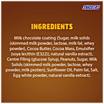 Milk Chocolate Coating (sugar, Milk Solids (skimmed Milk Powder, Lactose, Milk Fat, Whey Powder), Cocoa Butter, Cocoa Mass, Emulsifier (soya Lecithin, (e322)), Natural Vanilla Extract), Centre Filling (Glucose Syrup, Peanuts, Sugar Milk Solids (skimmed Milk Powder, Lactose, Whey Powder, Milk Protein), Sunflower Oil, Palm Fat, Salt, Egg White Powder, Natural Vanilla Extract).