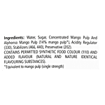 Water, Sugar, Concentrated Mango Pulp And Alphonso Mango Pulp (13.6%* Mango Pulp), Acidity Regulator (330), Stabilizer (440), Preservative (202), Antioxidant And Added Flavour (Natural And Nature Identical (300).contains Permitted Synthetic Food Colours (102, 110) Flavouring Substances).
