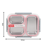 Tedemei Plastic & Stainless Steel Lunch Box/Tiffin Box - Leak Proof, Pink, 1.2 l