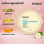 Inatur Micellar Makeup Cleansing Wipes - With Calendula, Jojoba Oil, Ylang Ylang Oil, 50 pcs