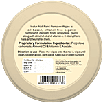 INATUR Nail Paint Remover Wipes is an oil-based, ethanol-free organic compound derived from propylene glycol along with almond oil and Vitamin E. It strengthens nails and nourishes them.