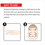 Using your fingertips, massage a small amount on the face and neck in an upward circular motion, focusing on areas like the brow and jaw line, which need more support.