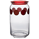 bb home Marino Airtight Storage Jar with Red Lid - Transparent, Glass, Printed, Cylindrical