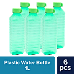bb home Leo Plastic Water Bottle - Wide Mouth, BPA Free, Green, 1 L (Set of 6)