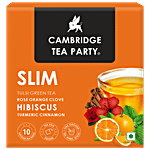 Cambridge Tea Party Slim Tulsi Green Tea - Rose, Orange, Hibiscus, Clove, Turmeric, Cinnamon, 25 g (10 Bags x 2.5 g Each)