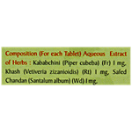 Kabab Chini, Khash, Safed Chandan, Other active Ingredients Warna Makhika Bhasma, udh Prawal Bhasma, Sudh hilajeet, Indragopa.