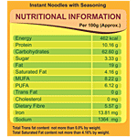 Nutrition_per: 100g Energy: 462 kcal Protein: 10.16 g Carbohydrates: 62.60 g Sugar: 3.33 g Fat: 19 g Saturated Fat: 4.16 g MUFA: 8.22 g PUFA: 6.12 g Trans Fat: 0g Cholesterol: 0 mg Dietary Fibre: 5.57 g Iron: 13.81 mg Sodium: 1364 mg