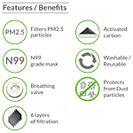 No Question askedBodyguard N99 Anti Pollution Reusable Face Mask with 6 Layers Activated Carbon Filters - Medium (Pack of 1)