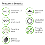 Bodyguard N99 PM2.5 Anti-Pollution Face Mask with Activated Carbon & 6 layers filtration is designed to help provide quality, reliable respiratory protection. The mask has activated carbon to filter impurities of Air & uses a variety of features to meet your respiratory protection and comfort needs. The breathing valve helps in better exhalation. Use Bodyguard Anti-Pollution Face Mask for protection against dust, odour, pollen, toxins and PM2.5 particles. This product is suitable for both men and women.