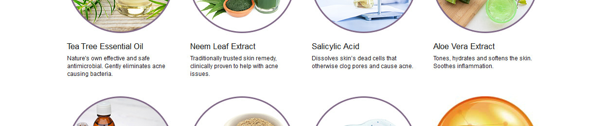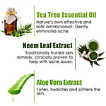 Tea Tree Essential Oil, Neem Leaf Extract, Mulberry Extract, Liquorice Extract, Salicylic Acid, Hyaluronic Acid, Vitamins B5 & E, Aloe Vera Extract