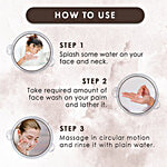 1. Splash some water on the face and neck. Take a coin size amount of the face wash in your palm.
