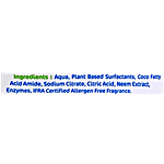 Aqua, Plant-Based Surfactants, Coco Fatty Acid Amides, Sodium Citrate, Citric Acid, Neem Extract, Enzymes, IFRA Certified Allergen Free Fragrance