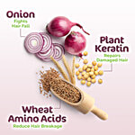 Mamaearth is Asia's first MadeSafe certified brand. The brand aspires to take care of every parent's and baby's well-being from head to toe with safe, toxin-free, and international standard products. All Mamaearth products go through multiple testing processes, including clinical dermatology testing in Europe, to ensure that they are of supreme quality and suit global standards. Each product that Mamaearth brings to you is certified to be free of harmful chemicals and dermatologically tested for sensitive skin. Every product that the brand brings to you is made from 100% organic and natural ingredients. Stress, pollution & unhealthy lifestyle choices can lead to many hair troubles - hair fall being the most common one. Mamaearth's Onion Hair Shampoo helps you combat this problem. Onion Oil, rich in Sulphur, Potassium & antioxidants, reduces hair fall & accelerates hair growth. Plant Keratin replenishes and strengthens hair, repairing its natural structure. It makes hair smooth and frizz-free. Safe for coloured & chemically treated hair, this shampoo is free of harmful chemicals & toxins such as Silicones, Parabens, Mineral Oil & Dyes.