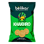 Befikar Vitamin Enriched Khakhros are coin-shaped wheat chips (khakhras) loaded with vitamin B12, B9, D and Iron. It's all baked product made from whole grain wheat. Now, munch on your favourite snack with the deep indulgence of taste with super healthy benefits.