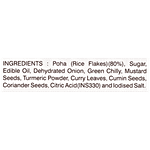 Poha (Rice Flakes), Sugar, Salt, Edible Oil (Rice Bran Oil), Green Chilly, Mustard Seeds, Turmeric Powder, Curry Leaves, Cumin Seeds, Coriander Seeds, Citric Acid (Ins330)
