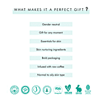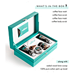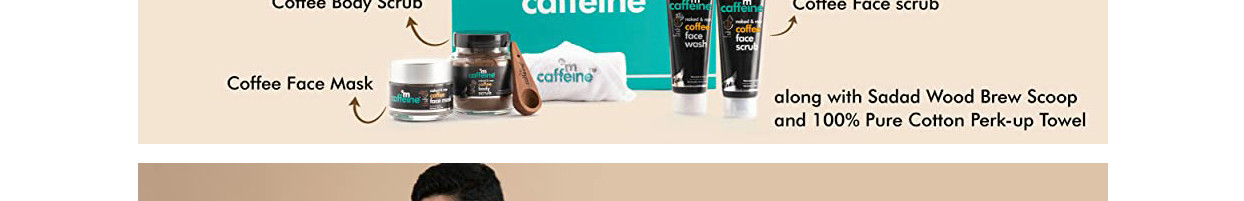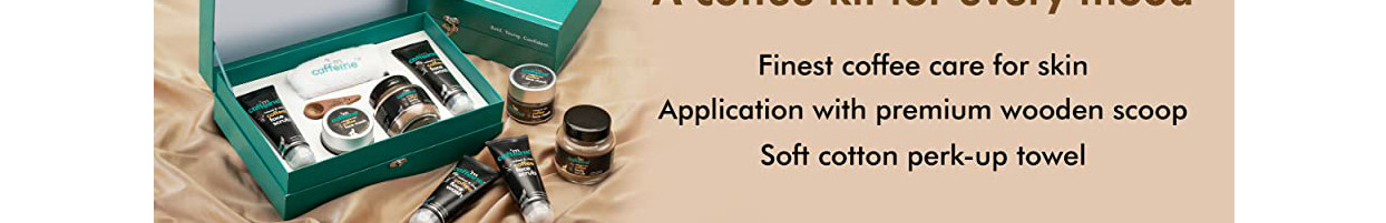 About the product In a mood for gifting? mCaffeine Coffee Mood - Gift Kit is specially designed for making the gifting experience worthwhile. With Pure Arabica Coffee-Infused Skincare products, this kit will elevate your senses with a zesty aroma. Create timeless moments with a gift which cares for the skin of your special ones. This gift contains the Naked and Raw Coffee Face Wash, Naked and Raw Coffee Face Scrub, Naked and Raw Coffee Face Mask, Naked and Raw Coffee Body Scrub. This Kit makes the ultimate skin rejuvenating regime, which everyone must follow to keep their skin healthy. Naked and Raw Coffee Facewash with White Water Lily: Deep Cleanses | Removes Tan & Impurities | Reduces Puffiness A deep cleansing formula that removes the excess oil and dirt, and gets rid of dullness from the face to give you skin that is fresh, oil-free and nourished. Naked and Raw Coffee Face Scrub with Vitamin E: Exfoliates | Removes Blackheads & Tan | Cleanses Pores A nourishing and exfoliating face scrub that goes deeper into the pores and opens up the clogged pores for a clear, fresher and younger-looking skin that's soft, smooth and glowing. Naked and Raw Coffee Body Scrub with Coconut: Exfoliates | Removes Tan & Dark Spots | Reduces Cellulite A scrub crafted to exfoliate the skin and deeply cleanse your pores so that your skin is smooth and polished. Naked and Raw Coffee Face Mask with Cocoa: Removes Excess Oil | Hydrates | Reduces Puffiness Removing the dead cells and impurities from within and nourishing the skin pores with essential nutrients, this face mask will bring back your glowing skin.