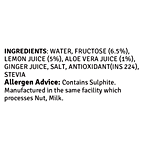 Water, Fructose (6.5%), Lemon Juice (5%), Aloe Vera Juice (1%), Ginger Juice, Salt, Antioxidant(INS 224), Stevia