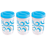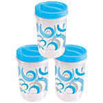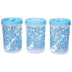 Princeware Twister Delight Flower Printed Plastic Container With Spoon - Blue, 1500 ml (Set of 3)