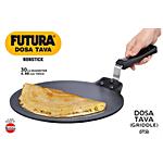 Dosa Tava is designed with just the right curvature and thickness to give you the best cooking results when making dosa. The flange which attaches the handle with strong stainless-steel rivets is uniquely designed to not interfere with the cooking surface and to hence maximize the cooking area, allowing you to make a large dosa, or several uttapam or cutlets at one time. The 4.88 mm extra thick heavy gauge metal ensures fast and even heat conduction and retains heat well Perfect for traditional South Indian Dosa (Rice & Gram Pancakes), Crispy Dosa (Rice & Gram Pancakes), Masala Dosa (Rice & Gram Pancakes with Spicy Potato Filling), Rava Dosa (Semolina & Gram Pancakes), Uttapam (Rice & Gram Pancakes), Three-at-One-Time Masala Uttapam (Savoury Rice & Gram Pancakes), Egg Rolls, Vegetable Rolls, Nine-at-One-Time Alu Tikki (Potato Cutlets – Sindhi Style)