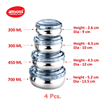 Jensons Steel Belly Shape Storage Dabba/ Container Set With PP Lid - Silver & Blue, 4 pcs (200ml + 300ml + 450ml + 750ml)