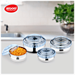 Jensons Steel Belly Shape Storage Dabba/ Container Set With PP Lid - Silver & Blue