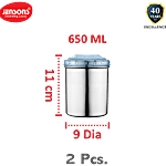 Jensons Steel Storage Deep Dabba/ Container Set With PP Lid - Silver & Blue, 650 ml (Pack of 2)