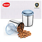 Jensons Steel Storage Deep Dabba/ Container Set With PP Lid - Silver & Blue